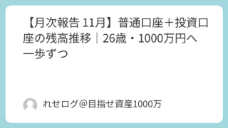 収支報告 【月次報告 11月】普通口座+投資口座の残高推移|26歳・1000万円へ一歩ずつ