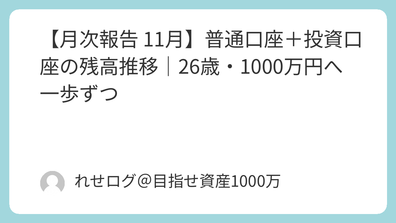 【月次報告 11月】普通口座+投資口座の残高推移|26歳・1000万円へ一歩ずつ